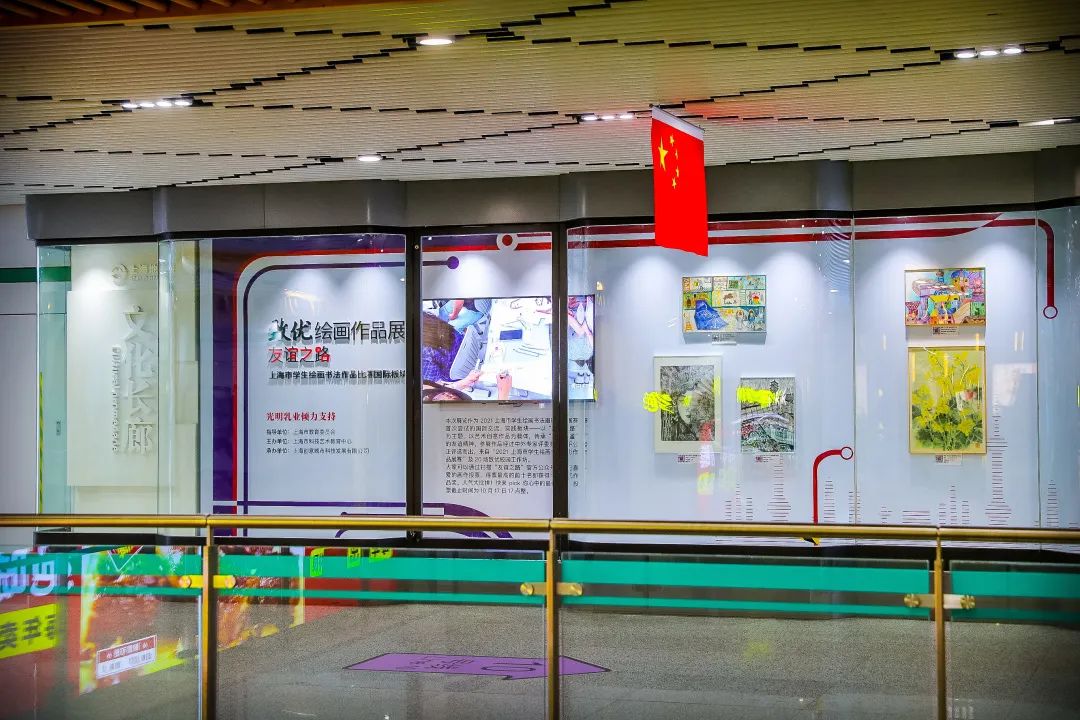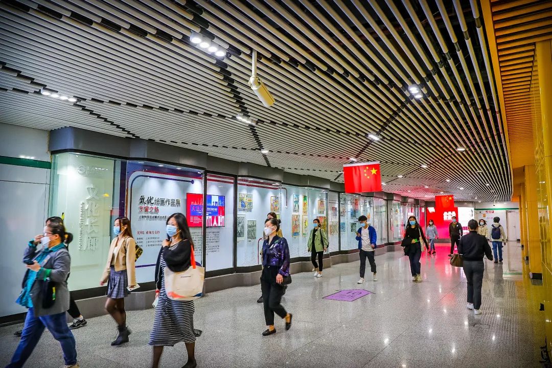 9月30日中法少年的绘画作品装点了上海市中心陕西南路地铁站的公共空间,绽放出中法艺术的“友谊之花”。