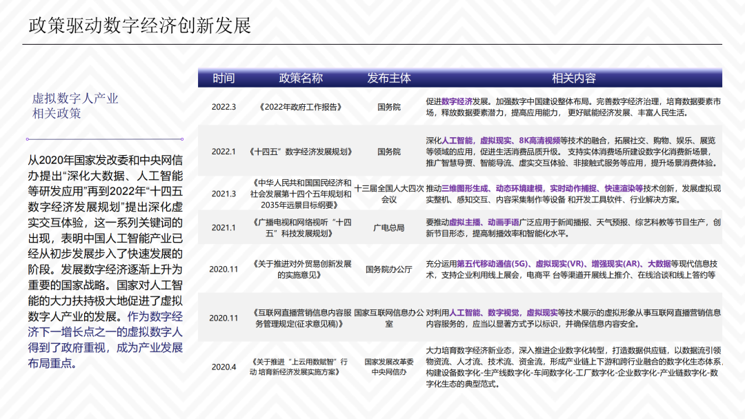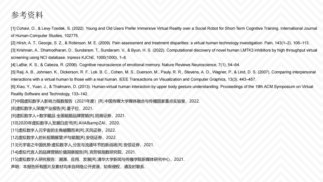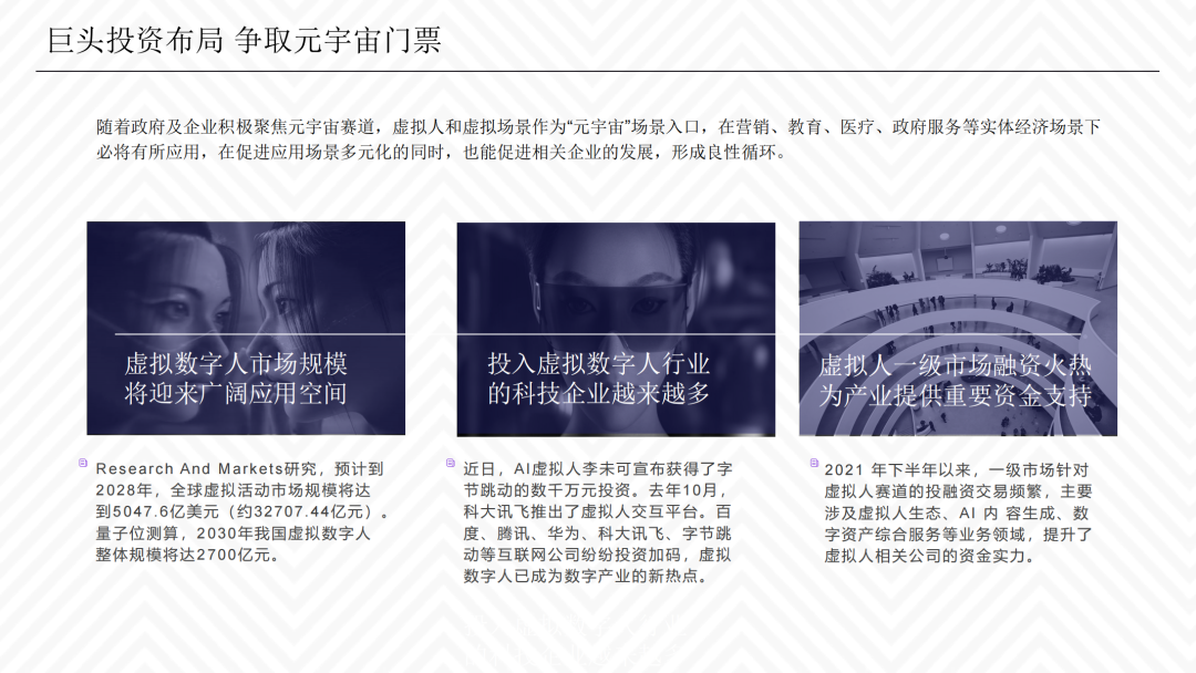 报告认为,目前国内外产业尚缺乏对虚拟数字人在元宇宙意义上具有系统性和前瞻性的评估,因而本报告尝试弥补以上空缺,以期引导虚拟数字人产业链规范化发展。