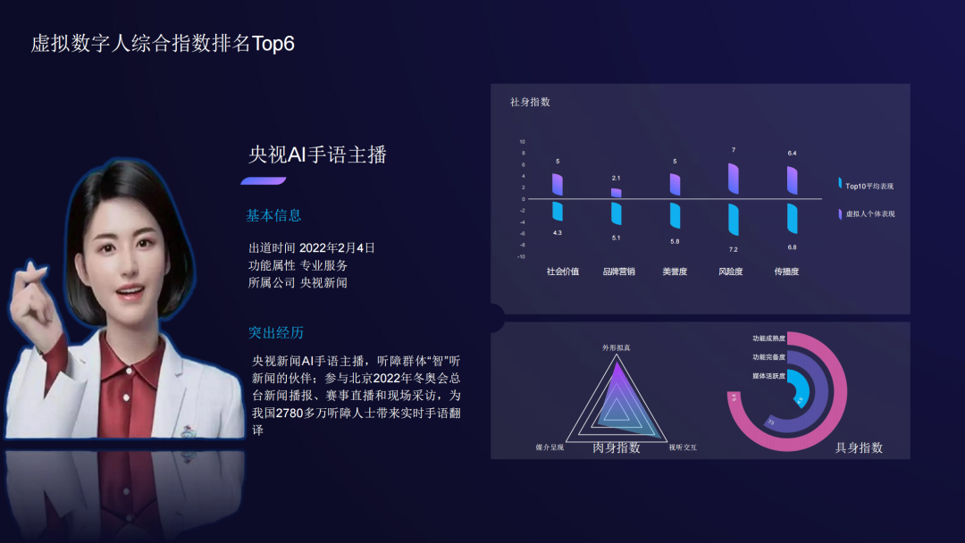 近日,在青岛市人民政府、山东省委网信办、人民网主办的2022(GIAC)智能视听大会——元宇宙产业发展论坛上,清华大学新闻与传播学院新媒体研究中心发布了《2022虚拟数字人综合评估指数报告》。
