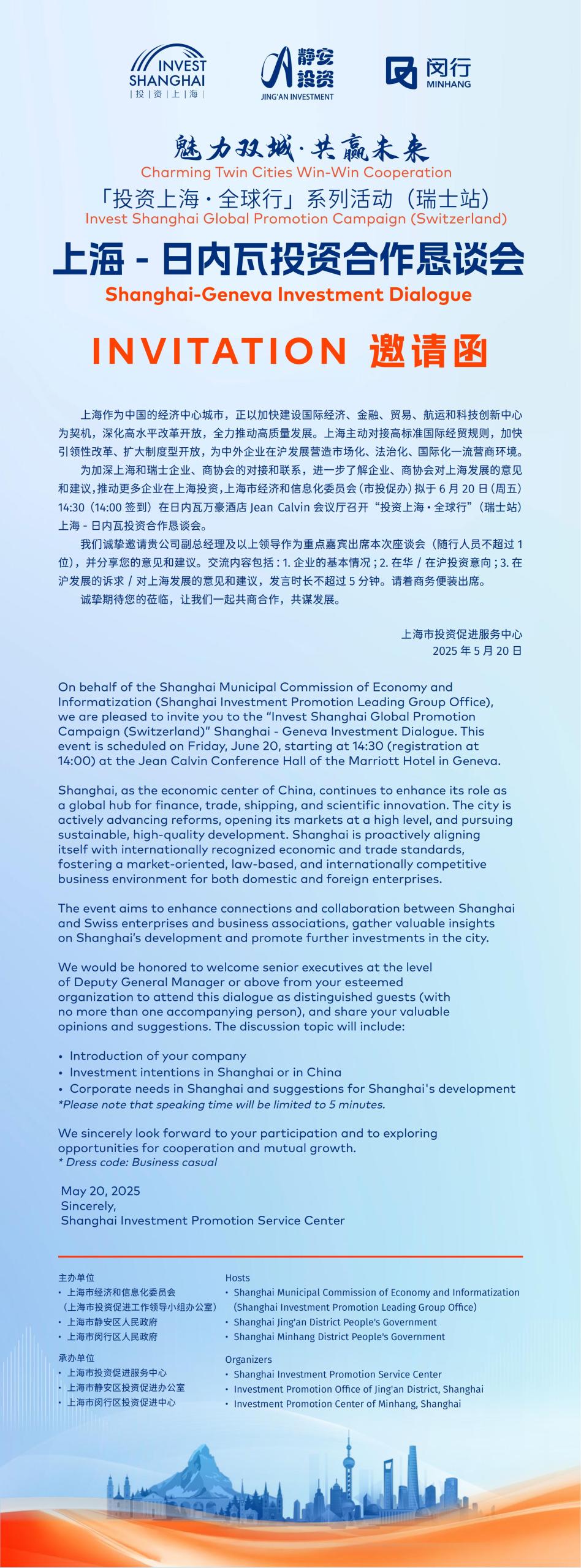 Invest Shanghai Global Promotion Campaign (Switzerland) – Shanghai – Geneva Investment Dialogue